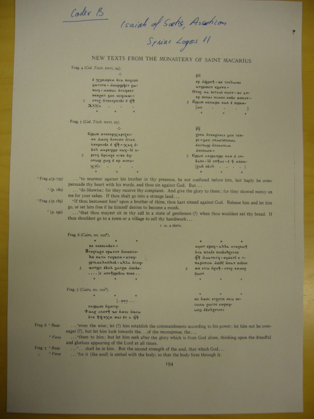 [15] Y. Nessim Youssef, “Un complément de l’Asceticon copte de l’Abbé Isaïe,” Vigiliae Christianae 55 (2001) 187-190.