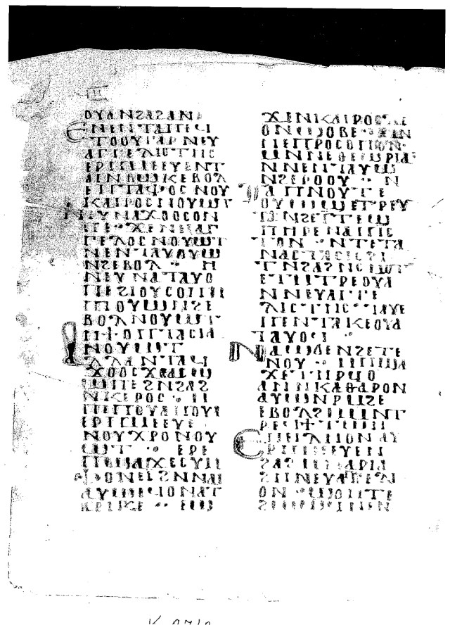 [10] This codex has the siglum sa 547 in K. Schüssler, Biblia Coptica. Die koptischen Bibeltexte vol. 3, 3 (Wiesbaden: Harrassowitz Verlag, 2004) 46-50. Cf. also Idem, Die katolischen Briefe in der koptischen (sahidischen) Version vol. 1 (CSCO, 528. Scriptores coptici, 46; Louvain: Peeters, 1991) xc; Idem, Epistularum Catholicarum versio Sahidica vol. 1 (Ph.D. dissertation, Münster, 1969) 43-44, 54; G. Horner, The Coptic Version of the New Testament in the Southern Dialect vol. 7: The Catholic Epistles and the Apocalypse (Oxford: Clarendon Press, 1924) 547-548 (= no. 15).