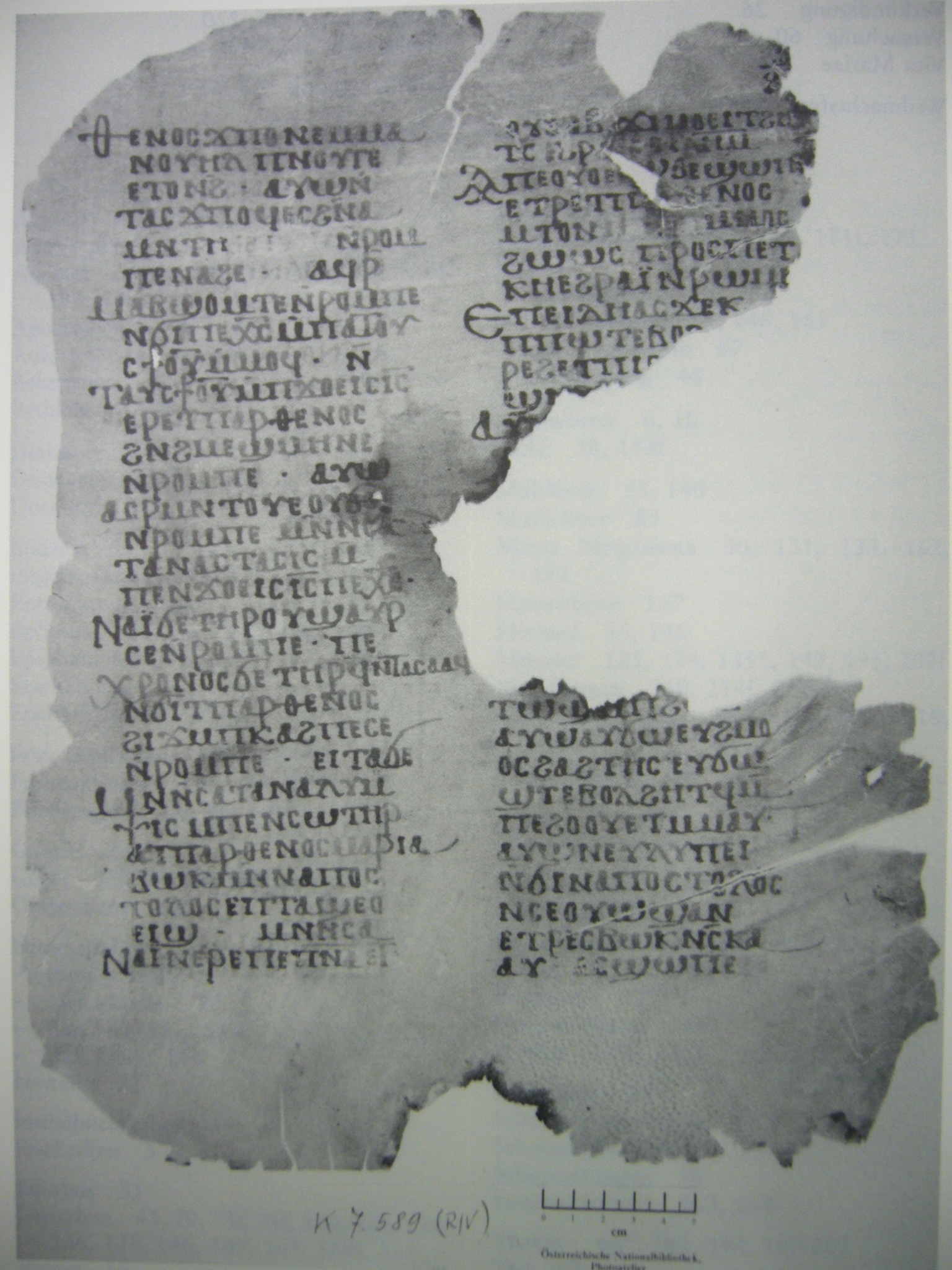 [1] H. Förster, Transitus Mariae. Beiträge zur koptischen Überlieferung. Mit einen Edition von P. Vindob. K 7589, Cambridge Add 1876 8 und Paris BN Copte 12917 ff. 28 und 29 (GCS, 14. Neutestamentliche Apockryphen, 2; Berlin – New York: Walter de Gruyter, 2006).