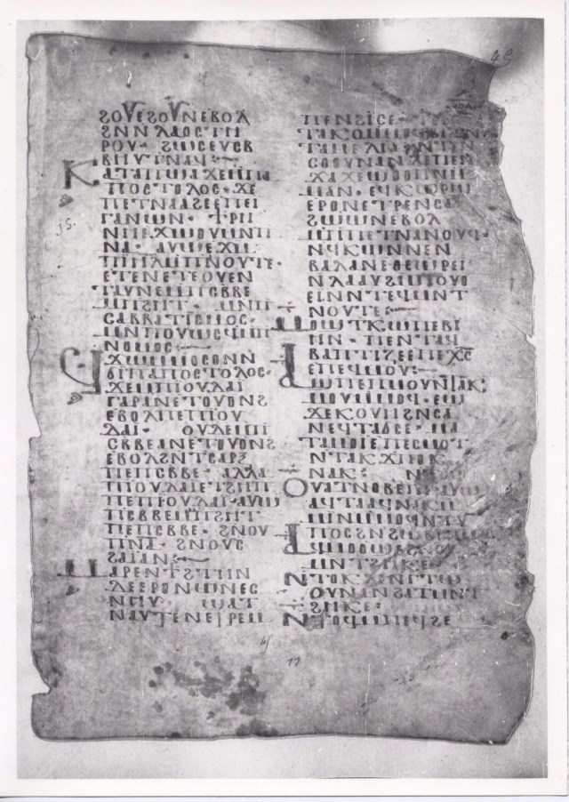 Finally, from Guillaumont’s list of this codex should be removed the fragment Vienna K 9646,[9] which contains indeed an excerpt from Isaiah of Scetis but was copied in a different hand and belongs to a Patristic florilegium, not to our manuscript. A second Isaiah fragment of the same florilegium, identified by Enzo Lucchesi, is Paris 1314, f. 144 (p. [189]-[190]) (= Greek Logos 12).[10]