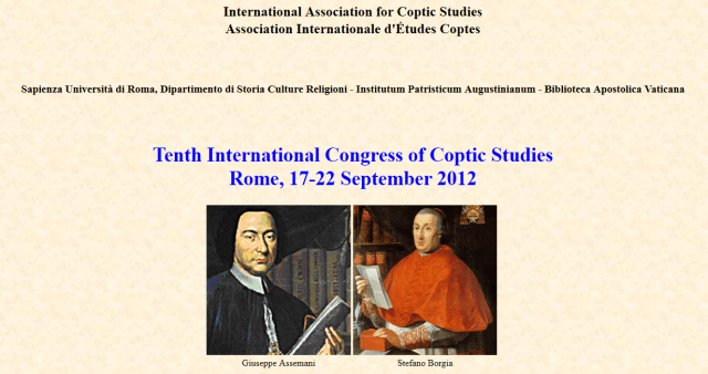 Visit the webpage of the 10th International Congress of Coptic Studies, which will take place between 17-22 September 2012 in Rome. The organizing committee: Paola Buzi, Alberto Camplani, Tito Orlandi.