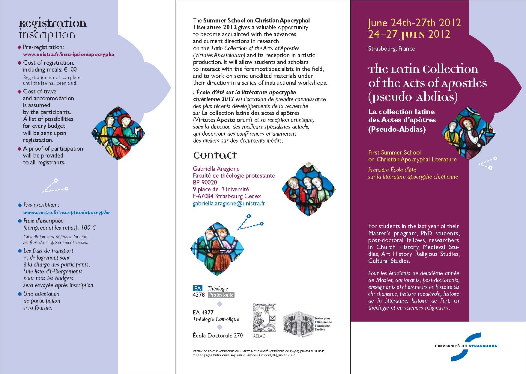 First Summer School on Christian Apocryphal Literature. Strasbourg, France, 24-27 June 2012