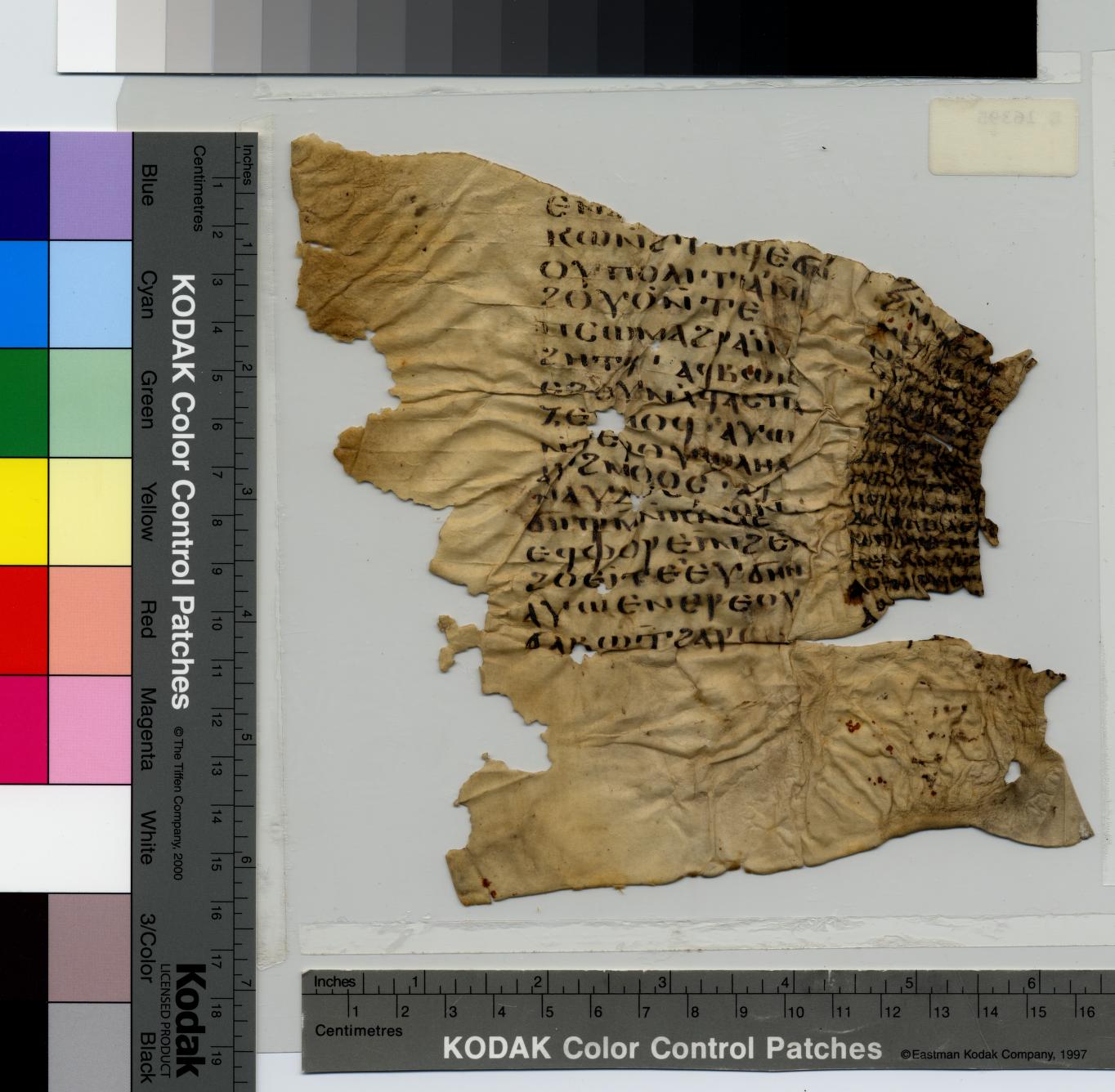 The incipit of the Coptic fragment, “he had a slave to serve him,” corresponds to the Greek εἶχε δὲ καὶ ἕνα δοῦλον ὑπηρετοῦντα αὐτῷ.[1] The desinit “the Egyptian saw him wearing soft garments and having a mat under him” parallels the Greek Βλέπει δὲ αὐτὸν ὁ Αἰγύπτιος φοροῦντα ἱμάτια τρυφερὰ, καὶ χαράδριον καὶ δέρμα ὑποκάτω αὐτοῦ.[2]