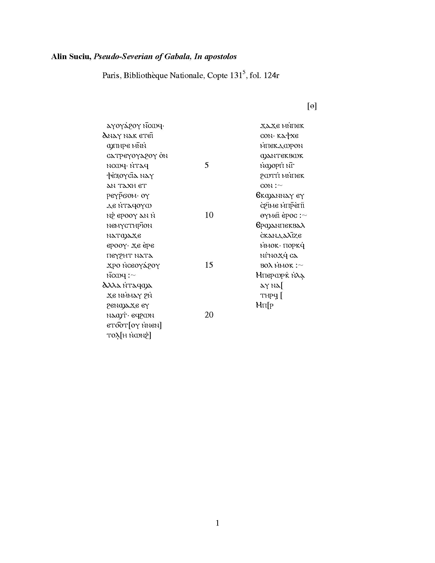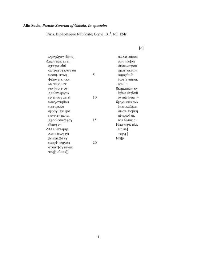 I am currently preparing an edition of the Sahidic and Bohairic fragments of the Recension B of Ps-Severian of Gabala’s encomium on the twelve apostles. In this sense, I am sharing here a draft version of my translation of the new Sahidic fragments, to give a glimpse of the text’s flavor.