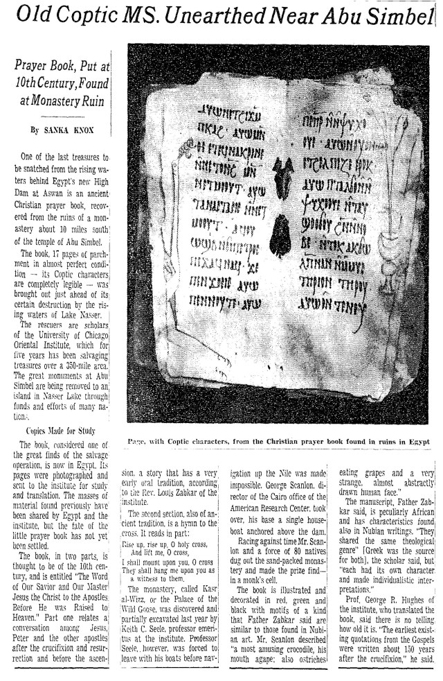 Roger, believe me I am not against promotion of Nubian studies (the text was found in Nubian not Coptic monastery and Coptic was one of three languages used by Nubians between at least 8th and 11th cent. A.D.) to a wide public. Yet we still need to follow some rules which are not written, don’t you think? I am pretty sure that the OI will promote the publication of final report of all Qasr el-Wizz finds and what you may like even more they put recent publications on their website where you can download it for free.