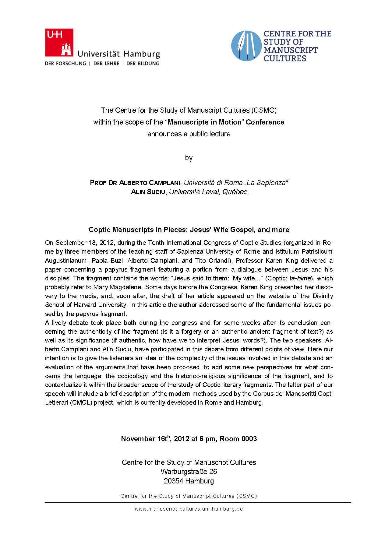 “Coptic Manuscripts in Pieces: the Gospel of Jesus’ Wife and more”